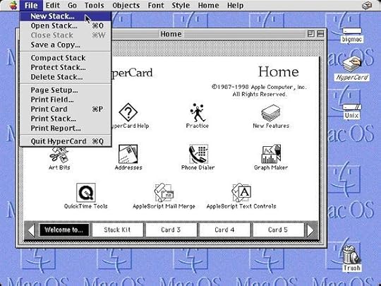 This article made me miss HyperCard. It also reminded me of a major lost opportunity in my career. In 1992 while fooling around with HyperCard, I conceived of the idea of building a hypertext version of my novel in progress (Notes For a Future Novel, of course, which is now part of Collected Works.)