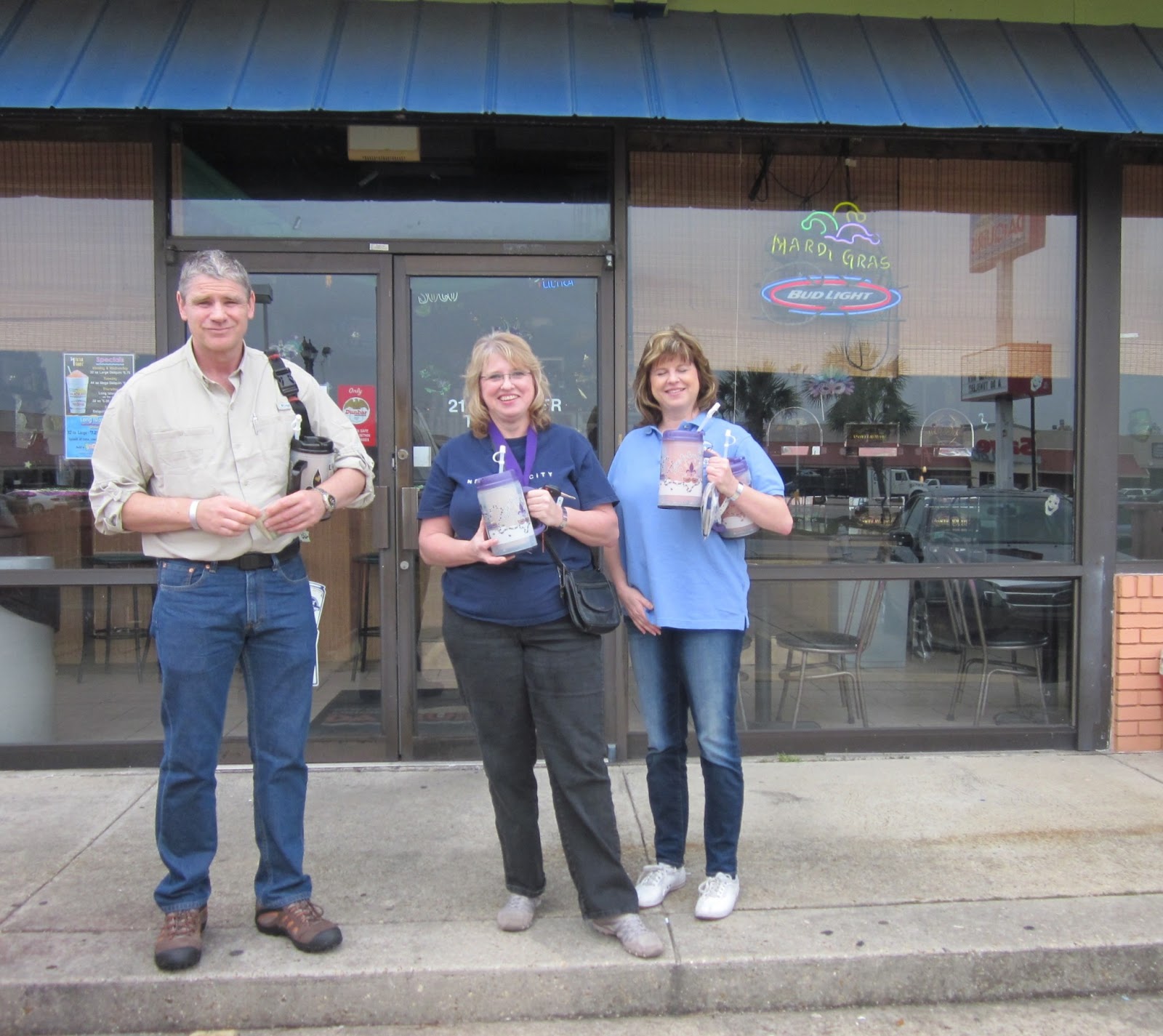 Generation Hall but first we had to lay in supplies for the ride. DH and I packed water (sensible) but we stopped off at a take away Daquiri shop (yes I did say a take away Daquiri shop) and purchased large frozen slurpies of daquiri, white russian and (for me) margerita. These were stowed on ice to be loaded on to the float.
