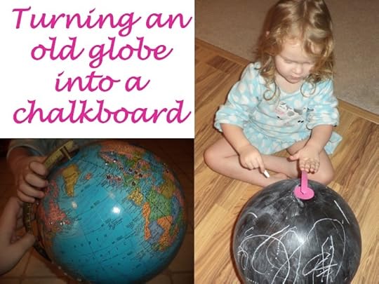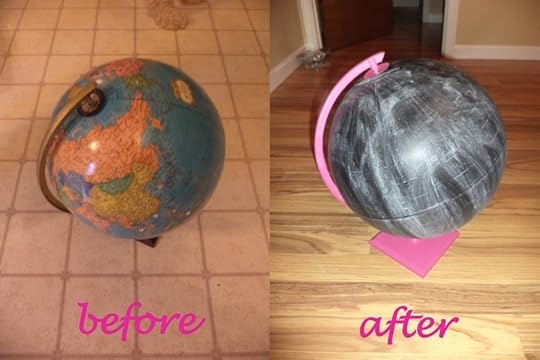 Talk about an exercise in patience! Not an easy feat, but I managed to accomplish it with minimum stress. Crafting with a movie on always makes things go smoother, it seems. I let the globe dry overnight, and then in the morning conditioned the surface. (According to the chalkboard paint instructions, you rub a piece of chalk over the entire thing, then wipe it off.)