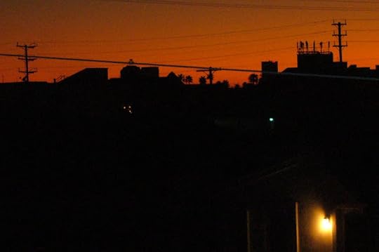 This picture was taken off my balcony. LA has spectacular sunsets due to all the smog. Don't ask me how that works because unless Ryan Gosling came up with that theory I'm not interested. My favorite part of the picture is the light down in the right hand corner.