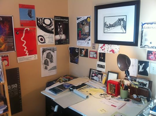 My house is soon to be transitioning, again. Moving back into a larger bedroom and I am moving my desk with me. Not sure what I am trying to force here. Habit? discipline? Progress? I have a firm idea, or at a least setting of where my next writing project will take place. Hoping this Summer will be fruitful creatively and I can transition somewhat from my flaccid self-promotion campaign and finally start working on the next project.