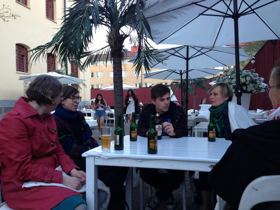Det var försommarens första dag i Umeå, och palmerna hade slagit ut lagom till efter-vernissage-hänget, där bland andra Erik "Littfest" Jonsson och Anneli Furmark var med och hängde.