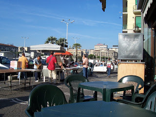 The third place was a restaurant and wine bar where I ate dinner and conversed with yet another Italian grandfather type who seemed to be the owner, bartender, waiter, bus boy and cashier. He stood by my table explaining in words and movements what was being said on the TV mounted above, all the while seeing to it that my wine glass was never empty. I paid four Euro for a HUGE bottle of pretty good wine which I had no hope of finishing.