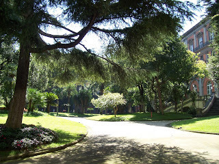 Royal Palace Gardens Exiting Castel Nuovo through the triumphal arch, the shopaholic will want to cross Piazza Municipio to the Galleria Umberta. The mall is indoors, but has a very open feel - the ceiling is a stunning, crystalline glass archway over stone walls. While you are at the Galleria, you might want to pick up some evening wear for a night at the Teatro di San Carlo, Naples’ biggest opera house - literally, across the street. On the opposite corner is the Royal Palace, but the entrance is actually around the other side in Piazza Plebiscito. The palace gardens are a park-like oasis in the city, crowded with tall shade trees, playing children and relaxing parents.