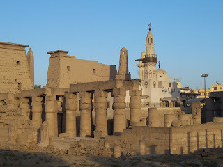 Another interesting feature of Luxor Temple is the fact that there's a mosque built right on top of it. The temple was once completely buried. The mosque was built on top, and only later were the temple and avenue of sphinxes excavated. But the mosque remains.