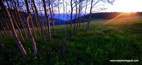 8:30: The Show. I climb the hill above my camp, shooting rosy light on aspens as I go (see below) and then set up for some evening splendor. I’m not disappointed. I’ve been doing this since I was in grade 10, and all my life I’ve wanted to be a professional photographer, and here I am. I’m not going to waste this amazing opportunity. Every single time I press the shutter release I consider myself blessed.