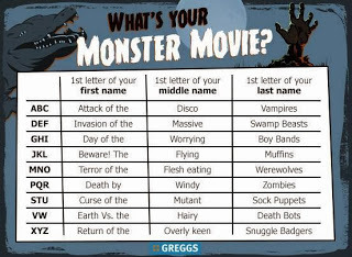 Oh, and apparently my Monster Movie would be 'Curse of the Flying Swamp Beasts'.