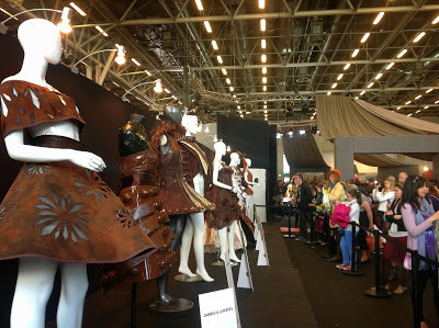 Yet the piece de resistence (and you’ll have to forgive me – for the life of me I cannot figure out how to incorporate French accents into my text, even though the Amazing Bob has only shown me about half a dozen times) was, unsurprisingly, haute couture. Evening dresses and ball gowns constructed completely from chocolate. Extraordinary, fabulous garments that models could actually wear – and did – in a very Parisian, very chocolate runway show.