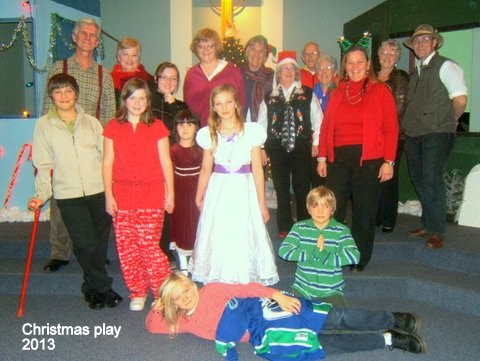 My writing has taken a new twist in the past few years.  My children’s choir at church, wanted to stage a musical and needed material that would match their talents, as well as those of the adults we co-opted into the group.  I spent weeks searching for a suitable script without success.  In the end, I decided to use my time writing the play rather than looking for one, so now I've added playwright to my other hats. (AS:...and every year she swears will be her last time...)