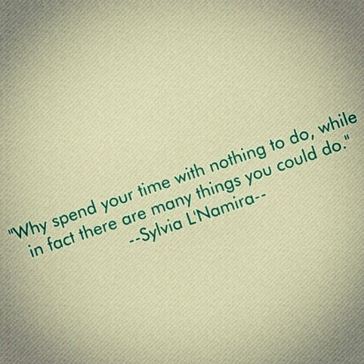 Quote:"Why spend your time with nothing to do, while in fact there are many things you could do."--Sylvia L'Namira--