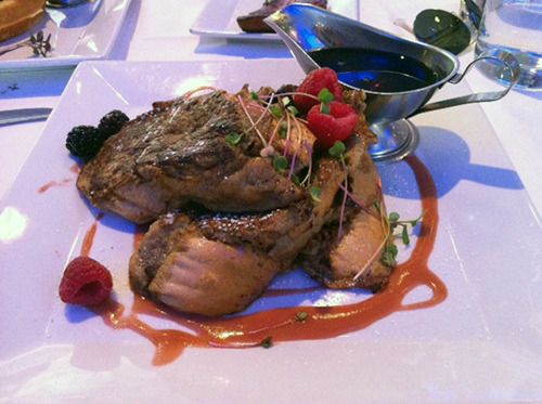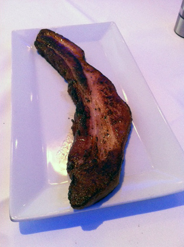 I expected a plate with 4-5 slices of modestly-thick bacon. Instead, we got one giant slab of the boar that killed Robert Baratheon. The bacon was so thick, it gave me performance anxiety. It had to be more than 1/2″ thick. It was glorious. We ate half of it and took the other half home and made a stew with it. That last bit isn’t even an exaggeration.