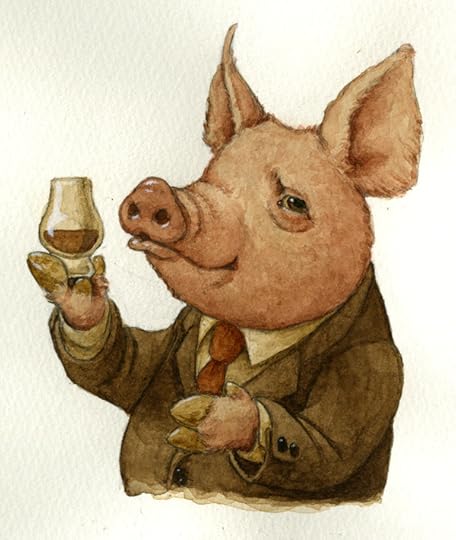 In the meantime, enjoy this cloven-hoofed connoisseur of quality cordials I painted for a friend’s birthday. You might recognize him as the spokespig for Japan’s most popular potable: