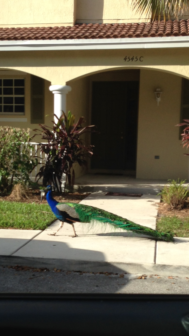 Although, it'd be very cool to have these beautiful creatures hanging out in your front yard, the neighbors say they're high pitched sounds are so obnoxious - as if a kid is screaming. That part - not so cool! And they LOVE the neighbors with black cars so they can look at their reflections (so vane)!