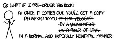 What If?: Serious Scientific Answers to Absurd Hypothetical Questions will be published September 2nd by Houghton Mifflin Harcourt. Starting today you can pre-order it from your favorite bookseller (Barnes & NobleAmazonIndie Bound).  There are also foreign editions, including a UK and Commonwealth edition and a German edition.