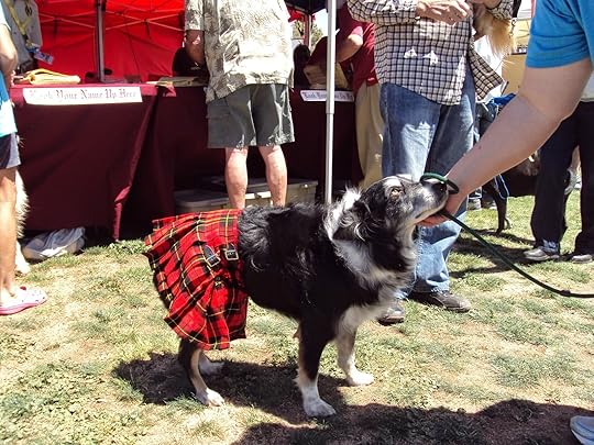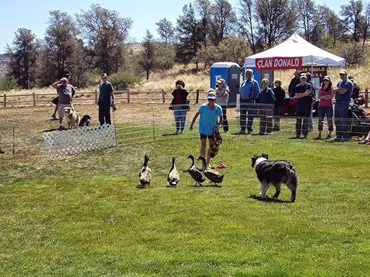 The good news right at the admission table was that we were both eligible for the senior discounts. What a boon for my husband who's a pro at pinching pennies. We checked in at the Clan Wallace booth to meet the kin and swap family histories. Then it was on to the herding dog demonstrations with border collies showing off their skills. Rather than sheep, which is standard fare, we were treated to a  flock of cranky domestic ducks. The dogs manipulated the fowl every which way and finally into their pens. The ducks seemed to prefer the pen to running willy nilly around the arena. They didn't seem to be in favor of canines.