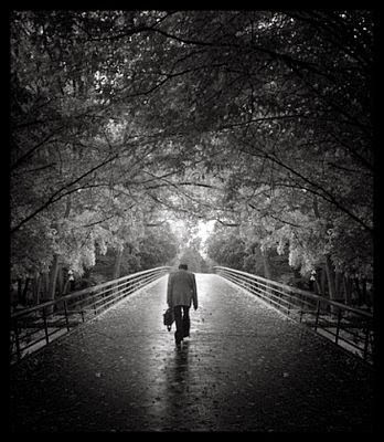 The phone hits the floor. Mom`s tinny voice follows me from the room. Fear drags me wildly through the shadows. A mewling starts in my throat. Oh God no...Please, please no. Cinderblock walls blur. My bare feet slap the concrete. The man’s image cuts through me...darting eyes...ragged hair...dirty hands. Dirty hands reaching into the bassinette...reaching for my son. “Please God...please.” I stumble up the steps.****** He pauses, notices for the first time how grubby his hands are. He wipes them on his pants then gently draws back the blanket, grasping it between thumb and forefinger. Blue...a tiny blue sleeper. It’s a boy...a boy! He allows the feeling to take him...the exquisite feeling. He gazes down at the face, at the perfectly sculpted lips, the tiny seashell ears...the beginning of a dimple. A cold wind hits his back. He hears the first drops of rain, the growl of thunder. He slips the blanket back over the small body. The wind snatches the basket and tosses it back and forth. The child’s lids flip open and he stares up at the man with startled bleached blue eyes. Another gust of wind. The man stares into the boy’s eyes for what feels an eternity. Then a crack sounds by his ear and he jumps. The bassinette hangs at an angle. He squints at the limb. A split runs the length of the worn bough. The basket rocks to and fro, to and fro. As the man watches the fissure grows, parting the swarthy bark. With quavering arms, he reaches up and takes hold of the handles. And the wind blows...****** The door crashes against the wall of the garage and the sob breaks from my throat. “Noooo!” Rain drives into my eyes but I can see what I already know. The bassinette is gone. He is gone. A broken bough lies under the tree. I hurtle across the yard. Thorns bite into my heel as I step on the thistle. Rain peppers my skin. I pick up the broken branch and spin around. Where is he? God please! Where`s my baby? I shove wet hair from my eyes and run to the edge of the maple, into the storm. And there it is. I can just see it. The bassinette. My legs turn to water and I lurch to the lilac bush. The basket is tucked under the branches. Time slows and a silence fills my head. I look over the side. My boy looks up, eyes round, drops of rain tipping the fringe of lashes. His eyes find mine and his lips spread in a toothless grin. His arms flail, the blanket crumpled in his dimpled fists. I claw at the netting and scoop him into my arms. I gather him close, hold him too tight. He squirms and I press my face to his hair, feel the heat of my child, the essence of my being; my heart. “Thank you.” ****** He watches as she cuddles the boy close and a smile feathers his lips. Bending, he finds the bag and tucks it beneath his arm. Emerging from the cedars, he sways slightly and carefully steps up onto the sidewalk. Fat drops of rain hit his head, meld into dark patches across his stooped shoulders. No one notices the old man as he ambles into the storm. Wind blows gray strands back from the worn face and drives hot tears from his eyes... ...eyes bleached the blue of an Arizona sky at high noon.