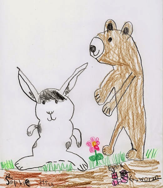 Stacey's daughter Sophie read the story and sent me this really cool drawing of Beatrice and Bear (please note her addition of Worm and Book -- ADORABLE!)
