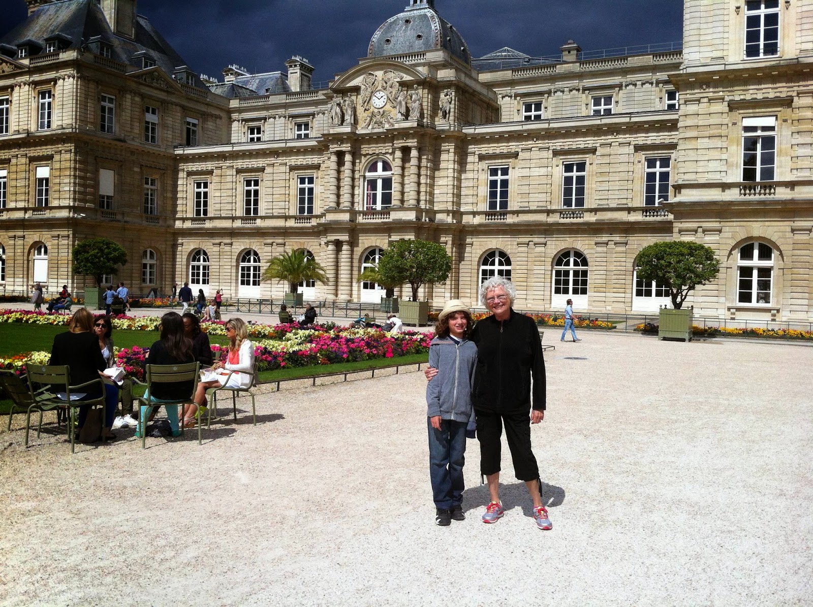 I'm here for a little over five months to get some creative projects completed and to immerse Julien in a French public school. Thanks to my brilliant, compassionate man with the kajillion frequent flyer miles, Mother has joined us for the first two weeks. Here we are walking through the Jardin du Luxembourg.