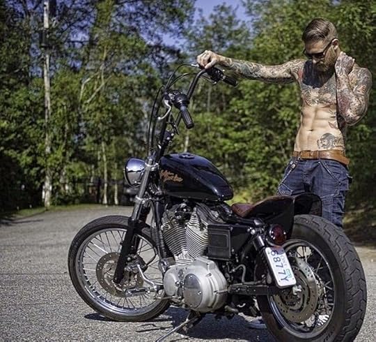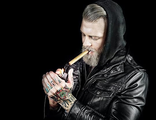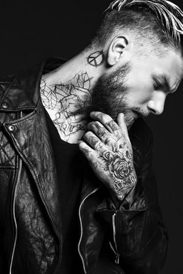 The blonde hair works, the tattoos work, the slim yet muscular build works. I chose side images because I pictured his face with sharper featured.