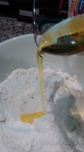 I wanted to make a small batch so I used what I had found to be the easiest recipe 8:1 ratio and cut it in half. I did 4 cups of flour to 1/2 cup of olive oil.