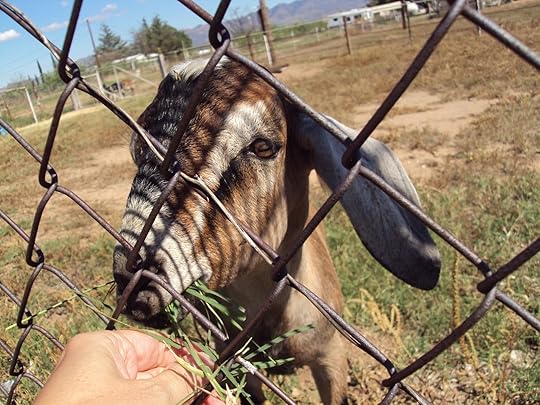 My family had a milk goat on our farm long ago. I helped my mother milk the nanny everyday. I never cared for goat milk. A little too strong tasting for me, but my brother liked it. The point of this post? It's kind of nice to have that little piece of my childhood next to my office. And it's a bonus to find joy in the simple things, like feeding a handful of grass to a precocious goat. Who else gets to do that on their lunchtime?