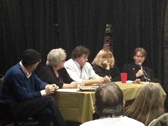 Lou Boxer invited me to sit on the panel for Existential Noir. I had no idea what this was, and I’m told that’s the heart of existential. We were blessed with our moderator, William Lashner, and sitting on the panel with me was K.A. Laity, Paul Oliver and Carole Mallory. We closed out the evening with our discussion, touching on the nature of God existing in a dark alley.