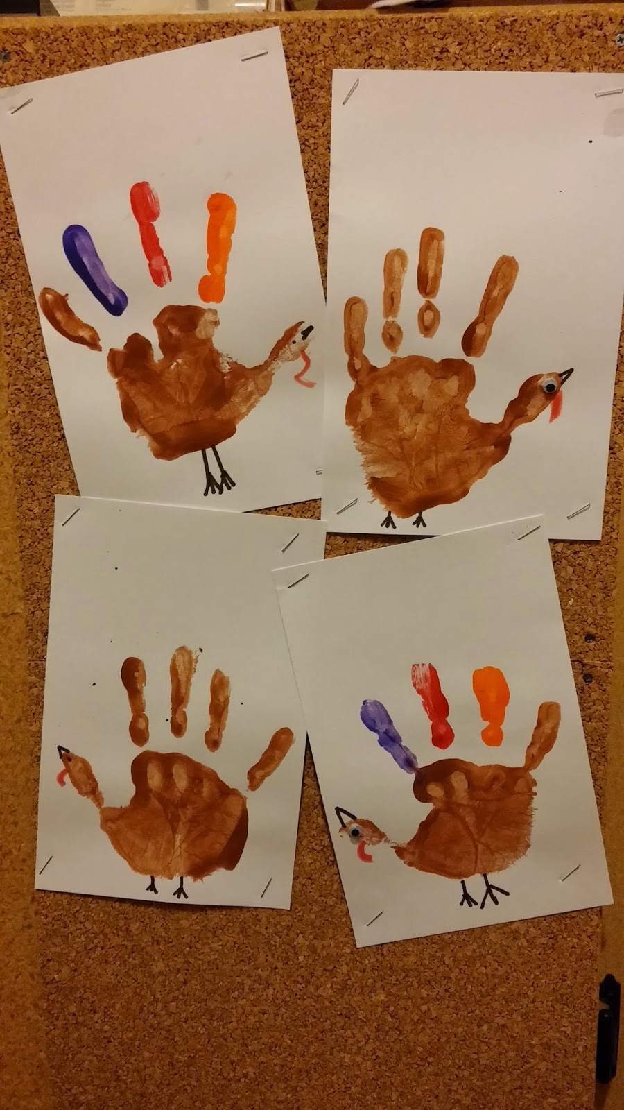 Today, during our homeschool time we took a few minutes to create one of my favorite Thanksgiving art projects, Handprint Turkeys.