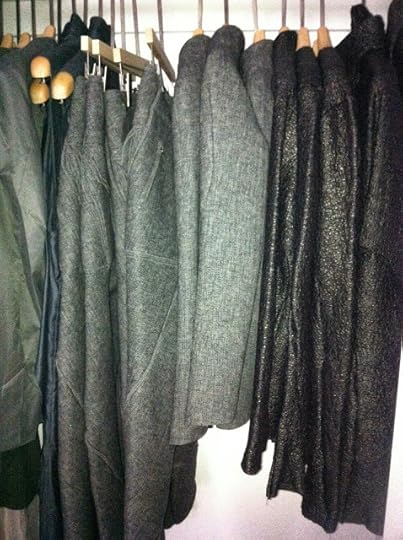 Most recent collection is a great amalgamation of past and new silhouettes and fabrications - cozy knits and structured jackets and pants in textured wools and high-tech cupro, gorgeous capes... I could go on. The past collections were also there, spread throughout the closets. It was basically a fairyland. If there was Narnia in one of those closets, I would not go and stay with the leather skirts and swishy woolen dresses.