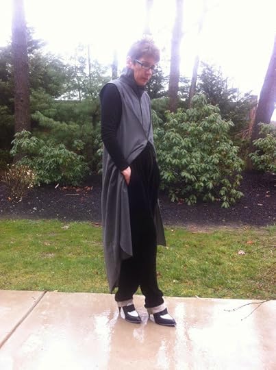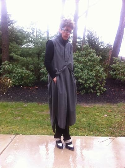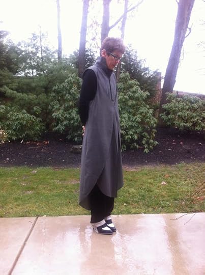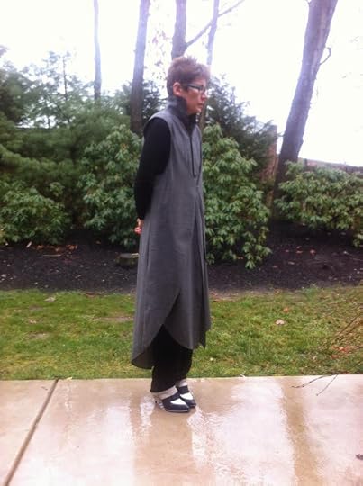 So yes, I bought a gorgeous piece from a previous collection (grey wool dress - sleeveless jacket) and pre-ordered another. Here're some pics of my new acquisition, worn with VanHongo velvet pants and basic black turtleneck. I tried for a few different angles to show the geometric complexity of the cut that results in a beautifully streamlined silhouette. Basically, magic!