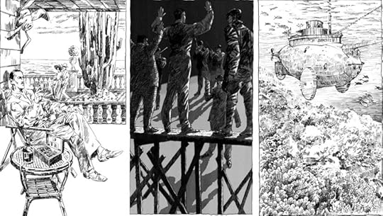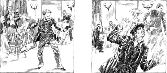 Картинки совсем другие. Без космополитизма. Третья повесть «Куда ж нам плыть?» – маленькая и злобная. Всё действие укладывается в один-единственный день, 31 декабря 1912 года. Жанр изобретен лично мною, раньше в авантюрной литературе такого не было: «идиотический детектив». Дочитаете – поймете почему.