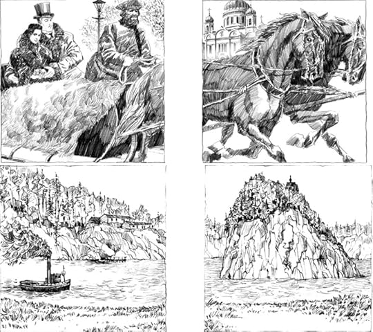 Вот картинки Игоря Сакурова.Вторая повесть «Парус одинокий» тоже водяная, но не про море, а про реку, текущую через леса захолустной Заволжской губернии. Сразу скажу, что сестру Пелагию и владыку Митрофания мой сыщик не встретит. Их там больше нет, они уехали в Израиль. Но Заволжской губернии уезжать некуда, и она живет без них сама, как умеет. Вот Фандорин приехал, со злом сражаться. Увидите, что из этого вышло. Жанр повести – «ностальгический детектив».