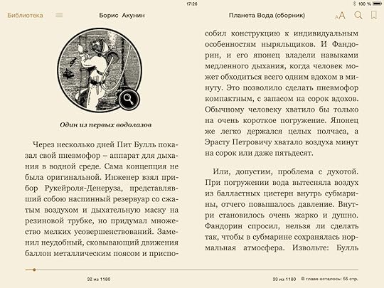 Эраст Петрович плавает на субмарине и ныряет в глубины моря. Из-за этого дурацкого увлечения моего героя мне и самому пришлось научиться нырять с аквалангом. Жуткая, скажу вам, гадость. Мокро, холодно и тесно, да еще осьминоги чернилами плюются.