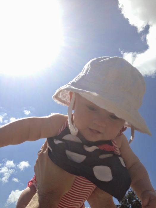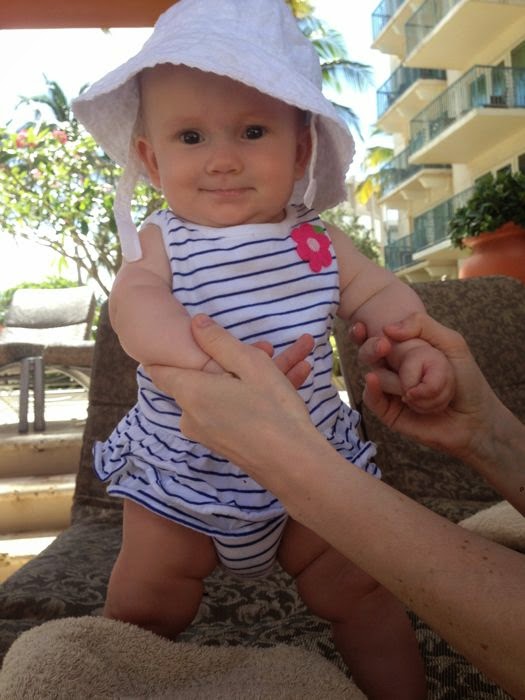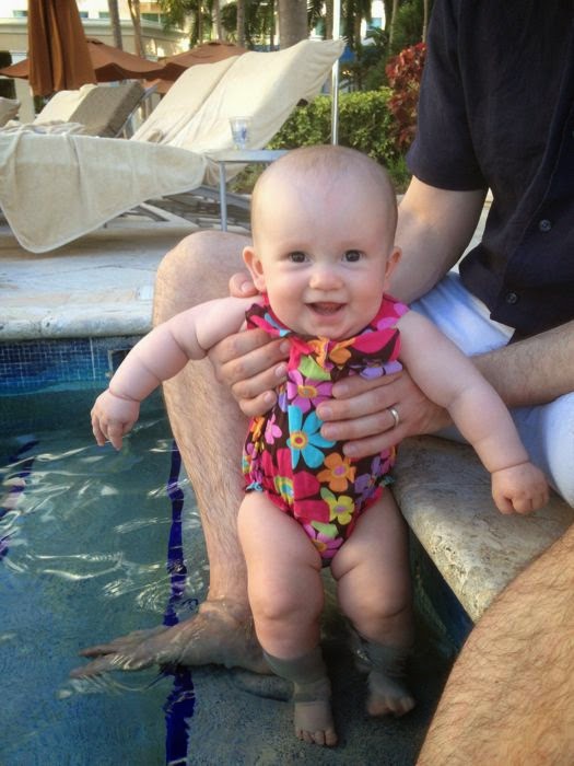 We took our first vacation with Parker this past week – to sunny Puerto Rico. It was as much an experiment as it was a getaway. What would it be like sharing a hotel room with our little so-so sleeper? Would she like the pool? The sea’s waves? Sand between her toes? Would we all have to huddle under an umbrella so as to not scorch any skin, especially her pristine cheeks, thighs and arms? All in all, it was successful. It had its challenging moments of course—the flights and naptime in particular. But man, it was fun spending so much time with her. Rolling around on the king-sized bed. Seeing her chubby little arms and legs exposed after being in feetie-pajamas all these months. Her constant smile and awe. She’s a little dreamboat.