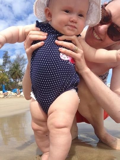 We took our first vacation with Parker this past week – to sunny Puerto Rico. It was as much an experiment as it was a getaway. What would it be like sharing a hotel room with our little so-so sleeper? Would she like the pool? The sea’s waves? Sand between her toes? Would we all have to huddle under an umbrella so as to not scorch any skin, especially her pristine cheeks, thighs and arms? All in all, it was successful. It had its challenging moments of course—the flights and naptime in particular. But man, it was fun spending so much time with her. Rolling around on the king-sized bed. Seeing her chubby little arms and legs exposed after being in feetie-pajamas all these months. Her constant smile and awe. She’s a little dreamboat.