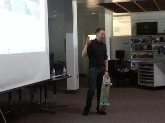 Another awesome day. I had a great talk with some of the skateboarding kids at Camrose Composite High School. Which meant I got to get my bored board on a board board out.