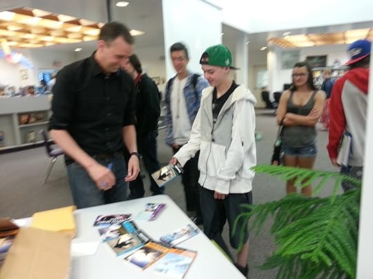 I did three talks and had interested and interesting students for each. These talks were sponsored by the Canada Council, so a big thanks goes out to them. A giant thanks goes out to Nicole Bannick of the Camrose Public library for putting it all together and Brenda Mucz for hosting the event. Nicole took us to lunch at Stockmens Chophouse