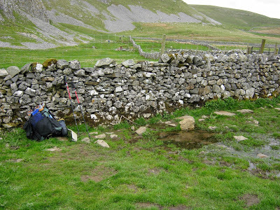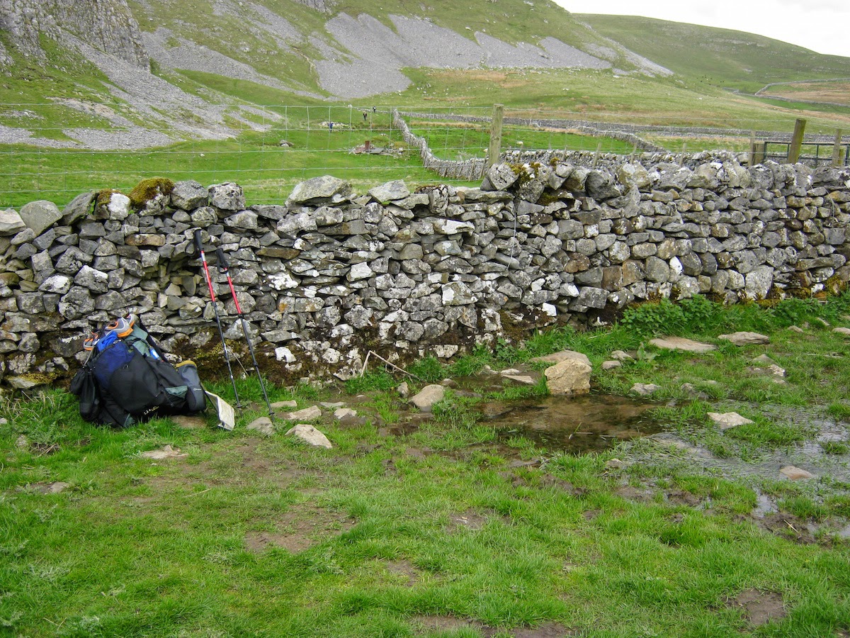 The ground is porous in limestone country, so becks – burns for the benefit of my Scottish readers – are relatively scarce. I knew I'd have to carry a bit more water than normal because many marked becks on the map would be dry. The first water source I encountered was a beautiful bubbling spring near Attermire Cave.