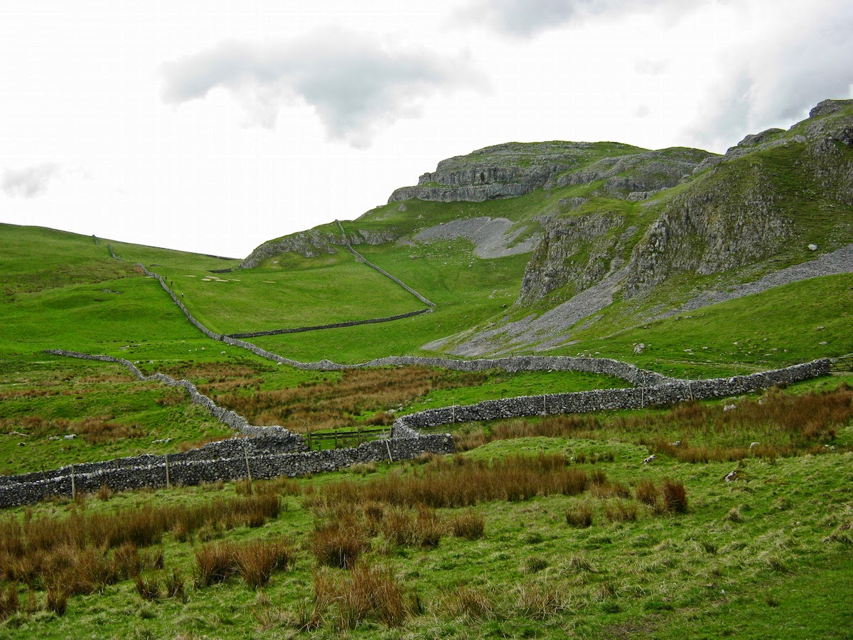 Departing SettleThe weather was fair but overcast as I left Settle, rapidly climbing the Dales High Way on grassy slopes towards Attermire Scar. It doesn't take long before the relatively built-up valley is left behind and limestone outcrops begin to dominate the hill pasture.This is a lovely section of walking. Attermire Scar is an impressive shattered corrie, all secret places and hidden caves. I vaguely remember seeing it as a child but coming back here as an adult immediately made me think of ancient landscapes from Tolkien – a place dense with natural and human history. This sense of a semi-mythical landscape was to follow me throughout the entire walk.