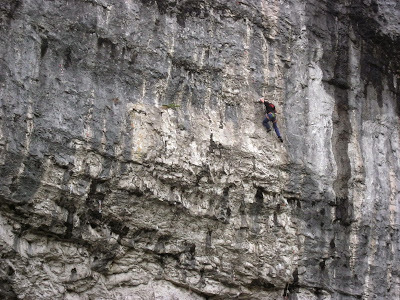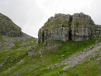 A half-remembered sceneI dropped down to Malham. It was gone seven in the evening and the village was deserted. I pressed on, and fifteen minutes later marvelled at the novelty of having Malham Cove to myself – almost. There were no other walkers about, but climbers were larking about on the enormous overhanging cliff.