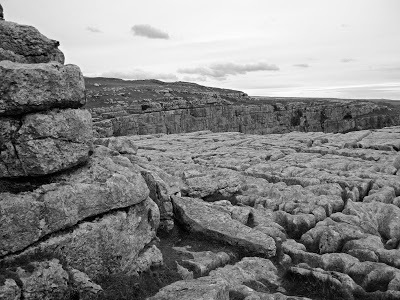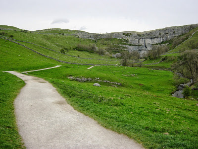 Too steep for the likes of me.Malham Cove is another old place of inspiration for me. The water that emerges at its base has been on quite an adventure after disappearing underground about a mile uphill, at a place called Water Sinks. Once you know a little about the geology of this area it adds an amazing extra dimension to your appreciation of the walk. I recommend this page for a basic overview. You'll never look at limestone hills in the same way again.The limestone pavement at the top of Malham Cove is another impressive feature. It's easy to disparage the Pennine Way as a 'tourist trail', but let's not forget that it passes through some of the most amazing and distinctive landscapes in the British Isles.