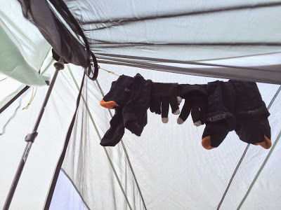Airing gear. The socks went inside my sleeping bag liner to completelydry out overnight.