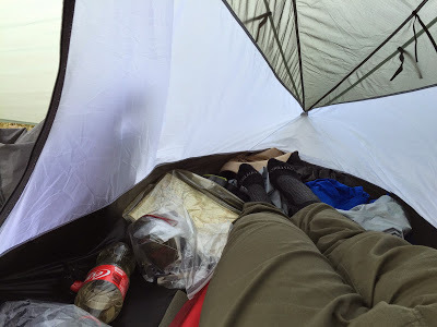 Camp twoNeedless to say, the first thing I did when getting into my shelter was to take off my socks and take a proper look at my feet. This is where I made a slightly foolish error. I had brought some Gehwol Extra foot cream with me, which is highly recommended by walkers who use it to keep feet in good condition when faced with wet weather. I'd never used Gehwol Extra before and was keen to assess its suitability before it earns a place in my Cape Wrath Trail pack. I slapped a good covering on to each foot in the belief it would aid recovery.The thing is, there are several different sorts of Gehwol cream. I later discovered that the Extra variety is a barrier cream, not a recovery cream. It's my belief that applying it when my feet were damp actually prevented them from drying out properly, because about half an hour after going to sleep I woke up with very itchy feet – another symptom I remember from my last encounter with immersion foot.