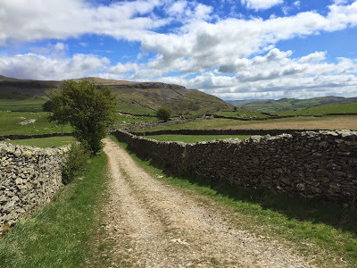 The bridleway to Wharfe.There were more walkers about that day, thanks to the great weather, and for a while I found myself walking with a group of ramblers who were looking for a bluebell field. It was at some point after passing the hamlet of Wharfe that I became aware that the soreness in my feet was worse than it had been at the start of the day, and it seemed more painful when going downhill (as this placed more pressure on the soles of my heels). I stopped a couple more times to let my feet air, but not for long enough; the pint at the end of the journey was calling me on, and I had a train to catch.In the end I reached Settle at about three in the afternoon. I was footsore, but overjoyed at having completed a stunning three-day walk in the Dales.