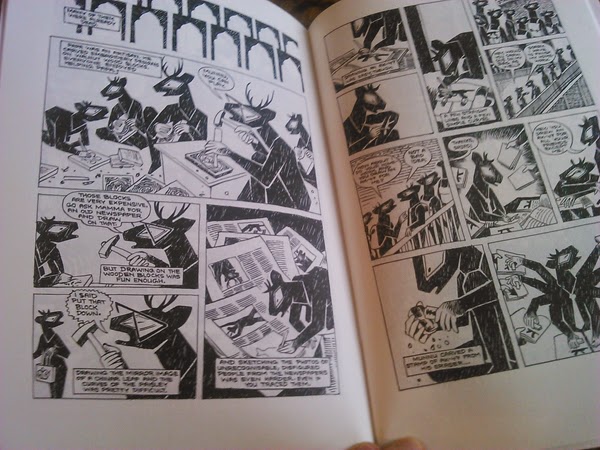 Firstly what I liked about Malik Sajad’s artwork was that his depiction of Kashmiri people as deer and how he gave other human characters such as Indians and Pakistanis normal human features- quite an influence from Spiegelman’s ‘Maus’ but the tale’s feel isn’t as deadly and dark as 'Maus' thanks to the fact that the protagonist is a small child and his innocent dream to be an artist lifts the atmosphere, brings upbeat and easier access.