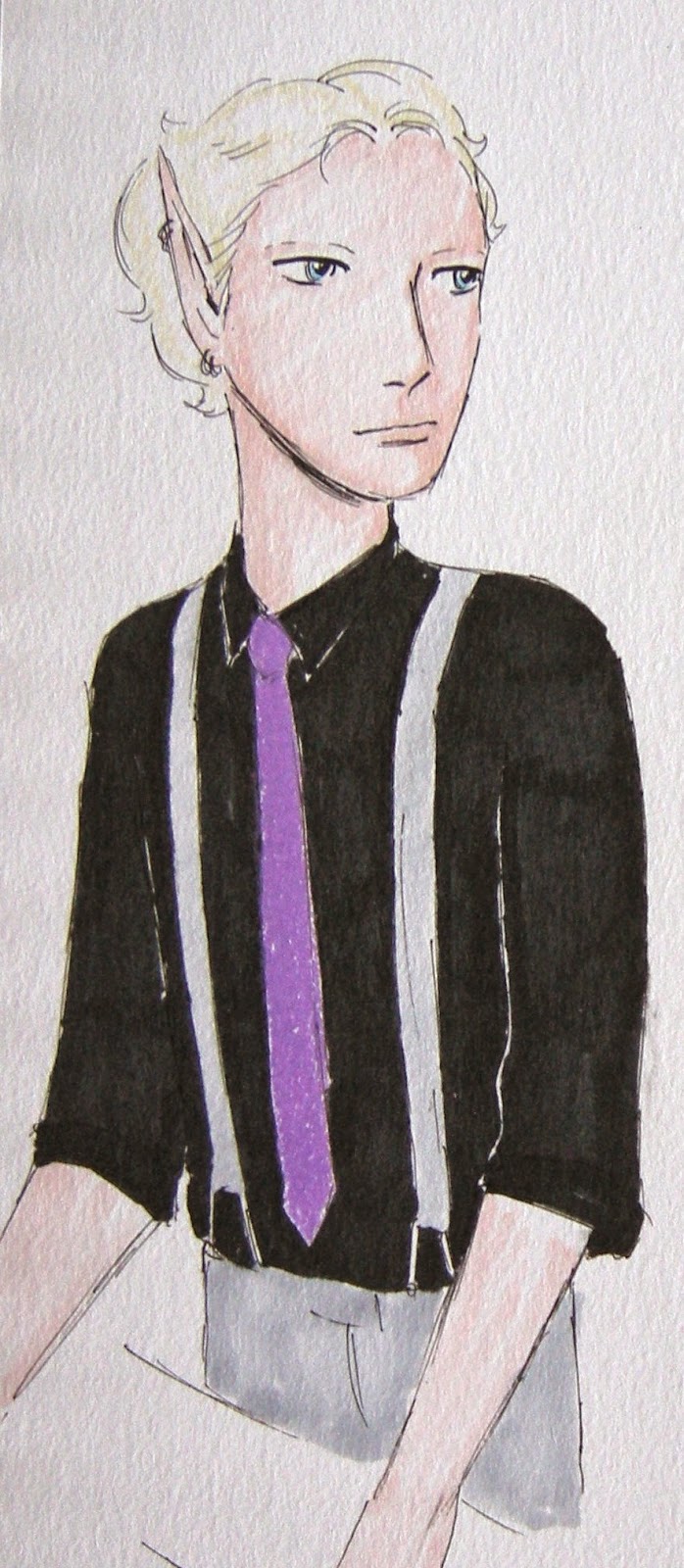 A color sketch of Det Arianni, one of the pivotal figures in the series. He is one of the most notorious people in the Hidden Lands but so often I draw him chopping vegetables. That's probably what he's doing here... Playing with Copics! (And I do mean playing. I don't know WHAT I'm doing.)