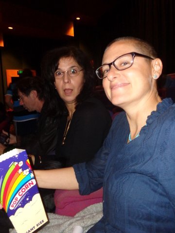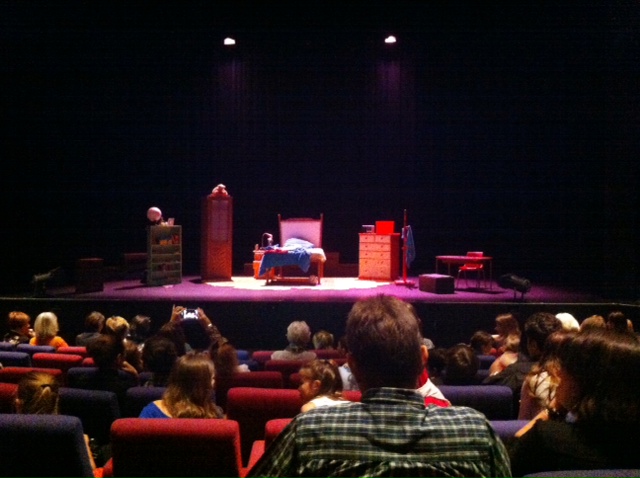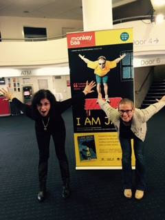 Whoops, illustrator Lucia Masciullo and I caught in the act of munching on popcorn during the I Am Jack theatre show.