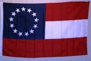 The design we see today was not the original one for the flag of the Confederate States of America. No, for the first two years of the Civil War, the official Confederate flag was the Stars and Bars, comprised of two horizontal red stripes and one white one, with a blue field decorated with white stars in the upper left hand corner.