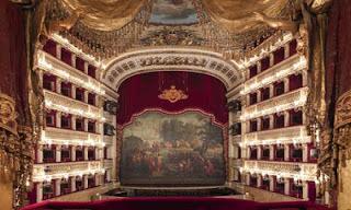 San Carlo Opera House, Naples, 1737Elisabetta used the newly acquired funds to build three new palaces, a royal opera house, a prison, hospices, a cemetery and a number of factories. The palaces were intended for museums as well as for royal residences; she also set the course to transfer a vast number of pieces from the priceless Farnese collection into Naples.At the same time, she ordered that the neglected Herculaneum excavations be resumed in hopes of finding further additions.