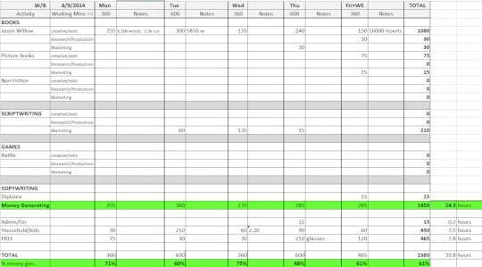 So I can see at the flick of a formula what percentage of each day I have spent on book writing or research, game production or… napping.