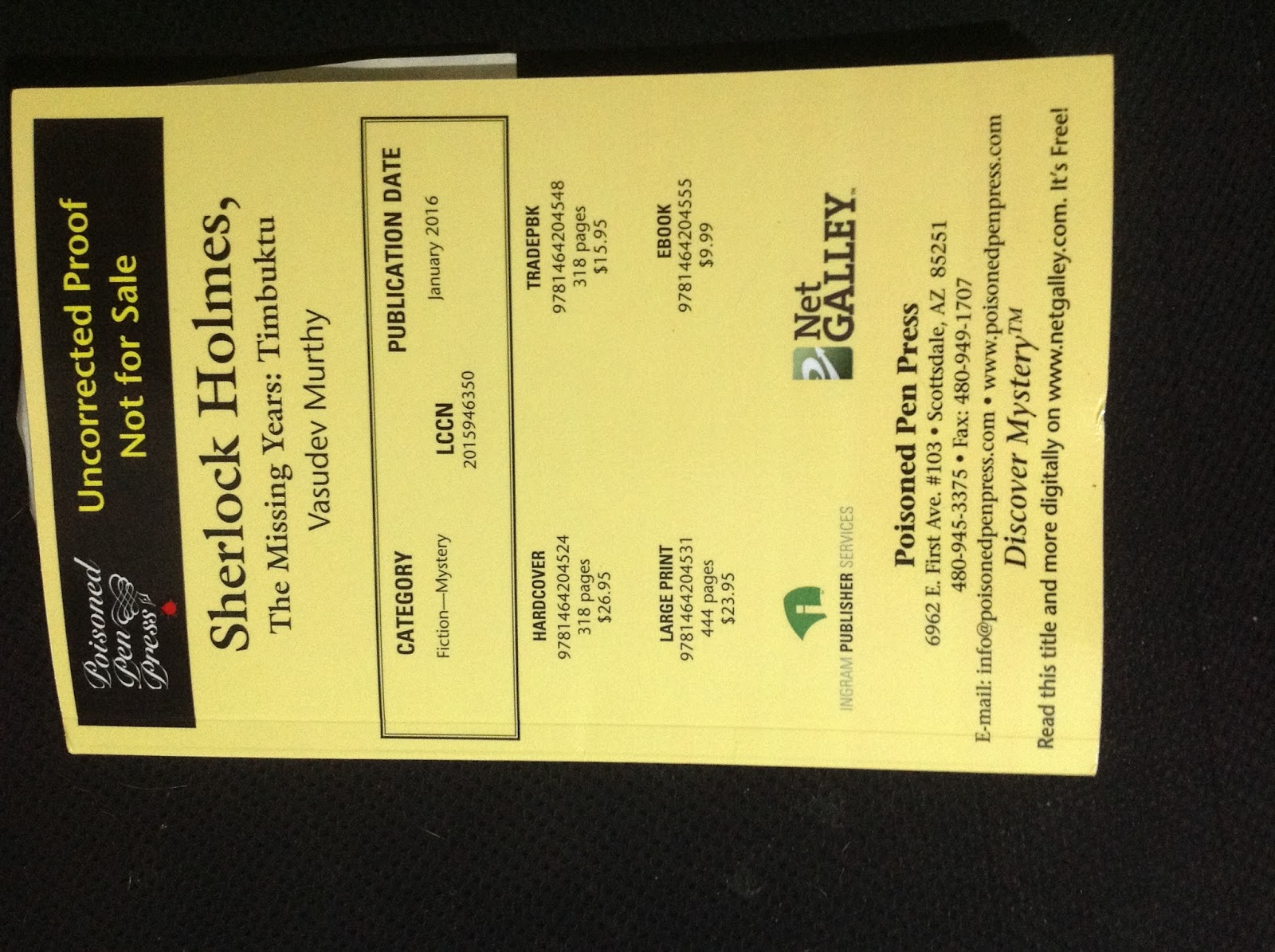 The Advance Review copy of Sherlock Holmes, the Missing Years: Timbuktu is here!